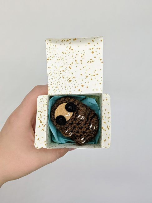 It contains many pictures to show you every detail of how to make this plush toy, so it is perfect for beginners! There is also a download and a detailed how-to for making the adorable box that goes with your newest slothy friend.