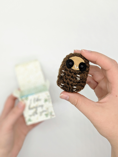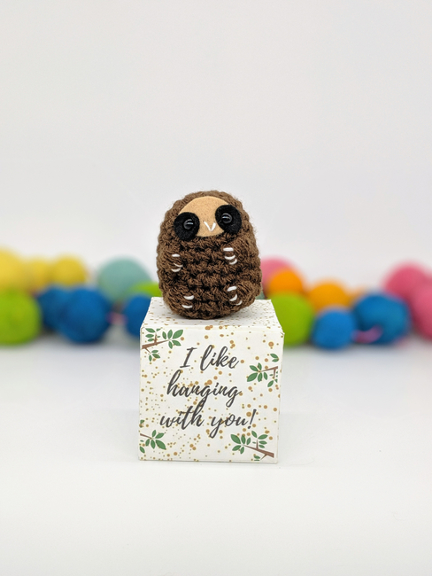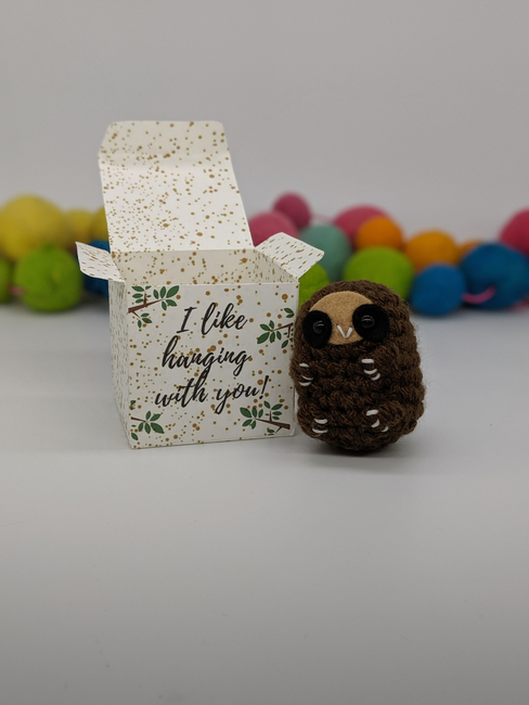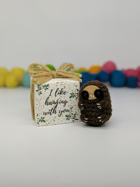 Let someone know you care by crocheting this thinking of you gift box! This funny sloth stuffed animal gift box can be given to a best friend as a friendship gift and makes a great sister gift as well. Give a sloth lover that is close to your heart the gift of knowing that you love hanging with them through the thick and thin!