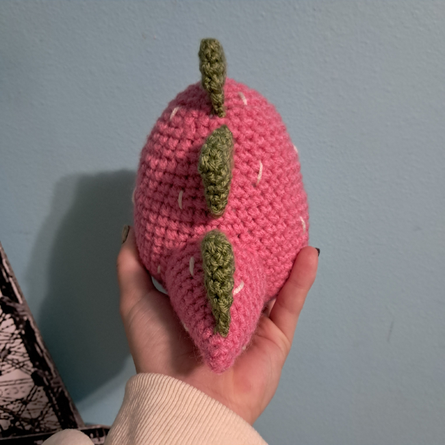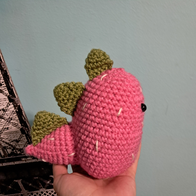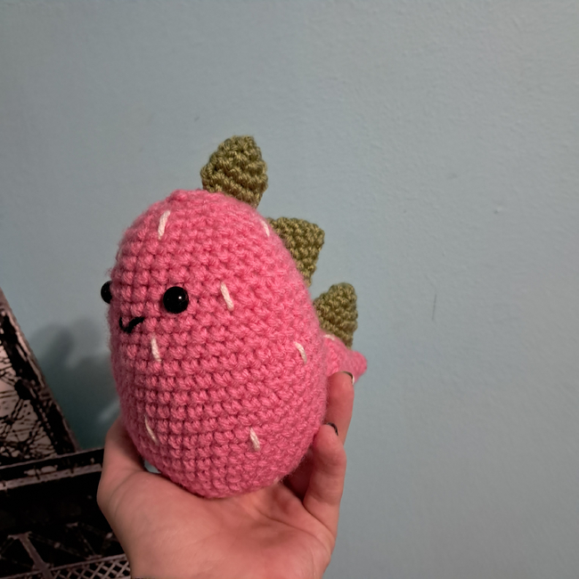 Hello, this is part of a fruit collaboration I was doing with some friends. It was inspired be a dinosaur squishmallow I have and decided it would be adorable as a mini strawberry version. So, here it is! Feel free to tag me in your makes of this cute little guy on ribblr @MaddiIdell and if you have any questions ask and I will be happy to help you out. Thank you!
