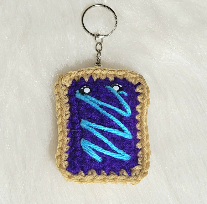 To make Mini Toaster Pastry Keychain you will need: Fiber fill or yarn scraps, Safety eyes, Keychain finding or lobster claw clasp. I@qd you don@qt have either of these, you can chain 40-60 chains and attach back to the top. This can be used to loop around things.. Tools required: 3.5 mm, Tapestry needle.