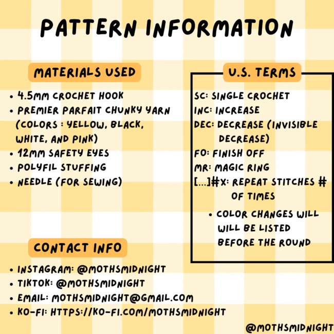 Minimal Sew Crochet Bee Pattern is a Beginner Crochet pattern designed by Moths Midnight for making an Amigurumi. This minimal sew crochet bee pattern is perfect for the spring & summer! It's good for beginners and has minimal sewing involved with optional blush. *This pattern did not have pattern testers. If you have any questions or concerns regarding this...