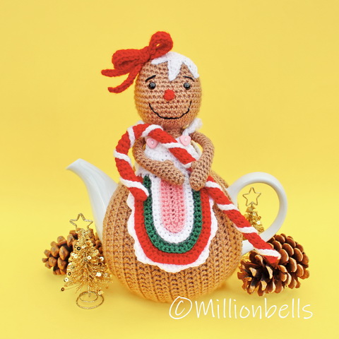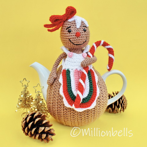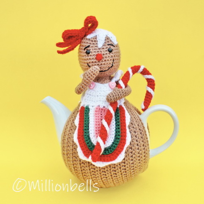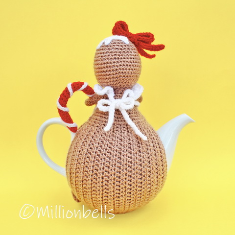 The pattern is suitable for any standard model teapot, 1.1 liter, circumference approx. 15.75" (40 cm), measured around the widest part of the pot, excl. the spout and handle.