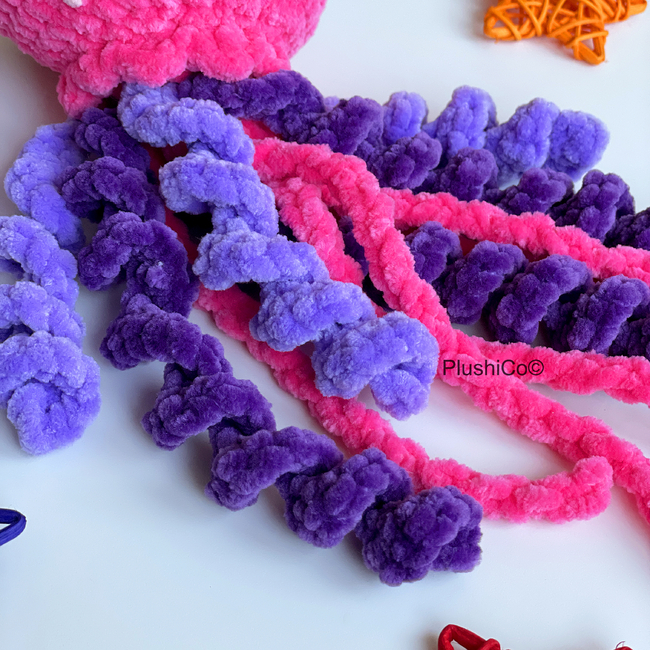 This no-sew amigurumi 2-in-1 bundle includes both sizes a big jellyfish snuggler and a small baby version. All pieces are crocheted and joined as you go no sewing required! Perfect for beginners and ocean lovers who adore cute, squishy plushies.
