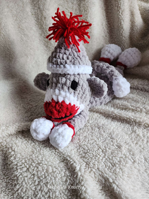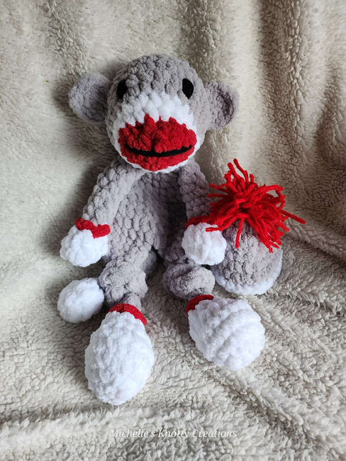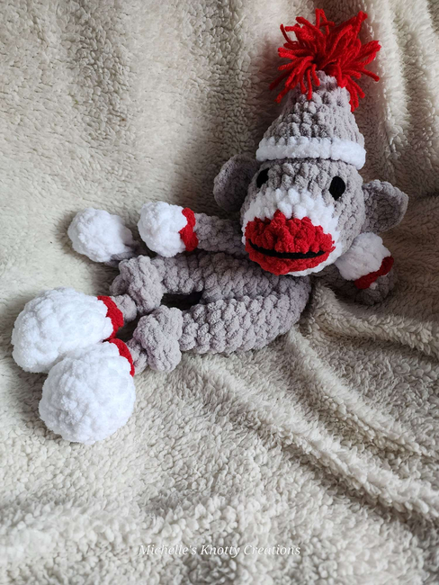 Michelles Knotty Creations designed the Monkey Lovey (Sock Monkey) pattern. Find more of their patterns on their Ribblr shop page.