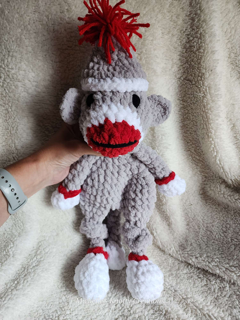 Monkey Lovey (Sock Monkey) is an Intermediate Crochet pattern designed by Michelles Knotty Creations for making an Amigurumi. Thank you so much for purchasing my pattern! I hope you have fun making your very own Monkey. Just a reminder, this pattern belongs only to me: @MichellesKnottyCreations. You are not permitted to sell, translate, steal, or copy this pattern in its...