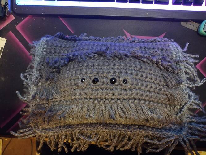For the Cover of the case, I used regular acrylic, but you may skip out on the Loop Stitches and brushing it out (I didn't complete because I had to do it strand by strand) by using fuzzy yarn!