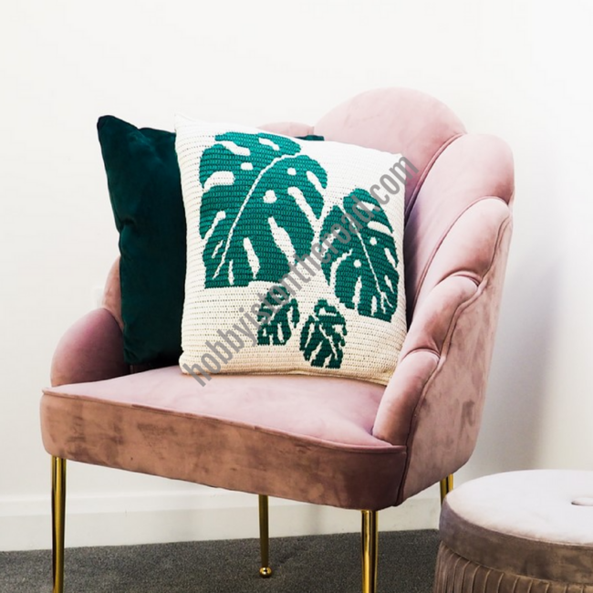 Crochet your own Monstera Leaves Coaster and Cushion Cover set!