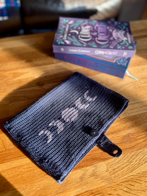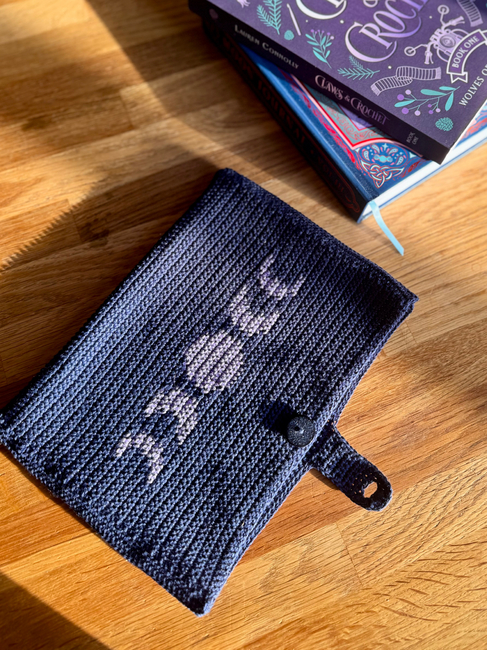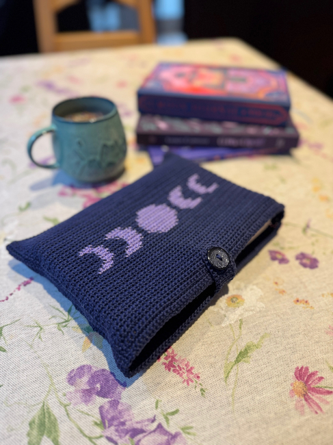 Red Panda Patterns designed the Moon Phases Book Sleeve - Tapestry Crochet Pattern & Grid pattern. Find more of their patterns on their Ribblr shop page.