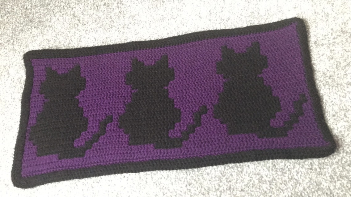 This mosaic crochet black cat pattern is recommended for crocheters with mosaic crochet knowledge. This pattern can inspire table runners, blankets, cushions, bags, clothing etc.