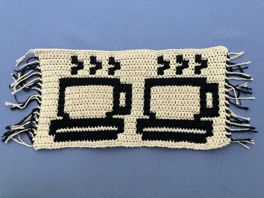This pattern is perfect for coffee lovers! The pattern includes the stitch row count needed to repeat the coffee cup pattern 2, 3, 4, 5, etc times.