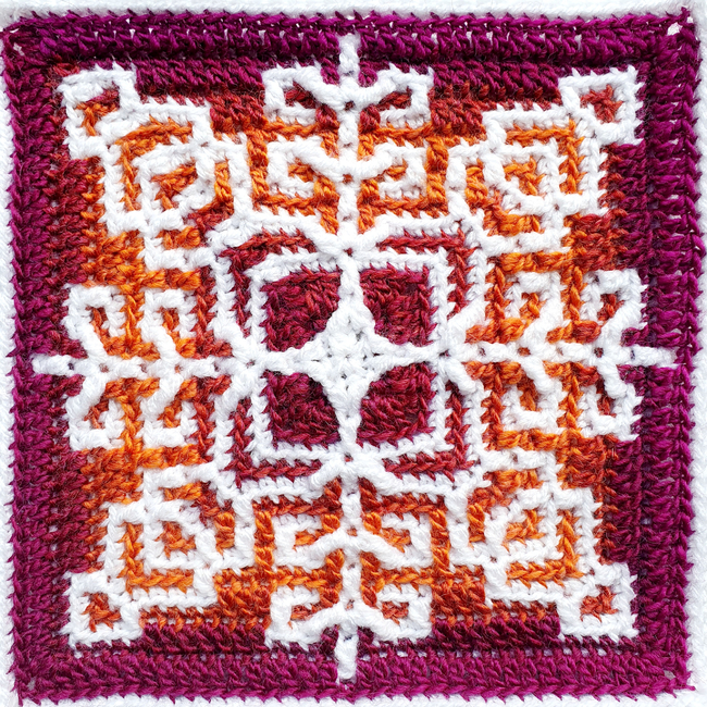 The magic lies in the mosaic crochet technique, which seamlessly blends colours without changing yarn within rounds.