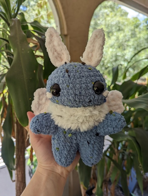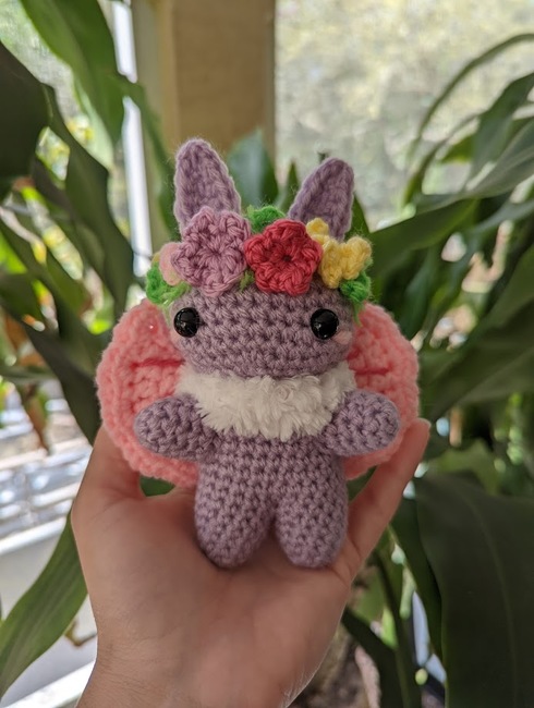 Pattern for Mothboy. I consider this to be intermediate because of it's stitch types, and number of pieces that need to be sewn on.
