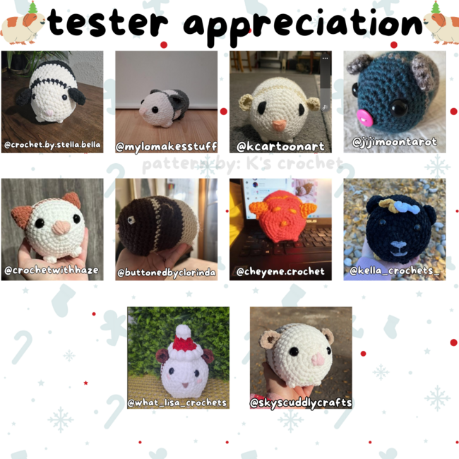 K's Crochet designed the Mr. Pickles the Guinea Pig pattern. Find more of their patterns on their Ribblr shop page.