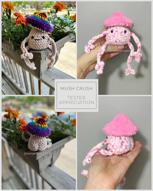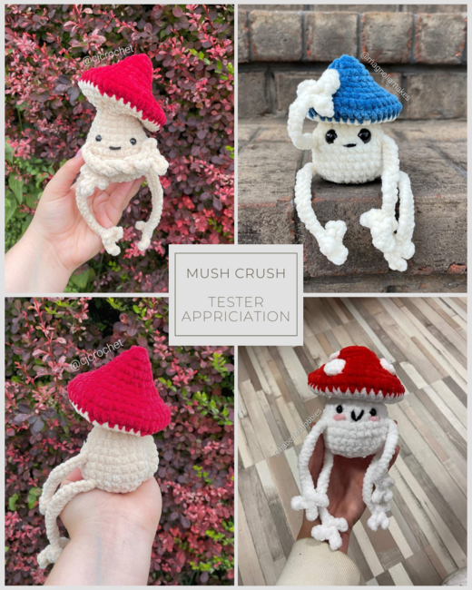 The baby version " Mushy Crushy" will be released as a free pattern soon :)