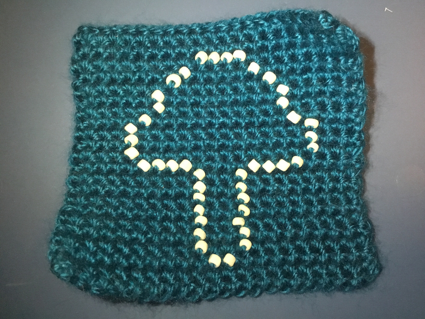 To make Mushroom Constellation Square you will need: Darker color of yarn to make beads pop, 44 seed beads. Tools required: Hook to match yarn chosen, Scissors, Yarn needle for sewing in the ends.