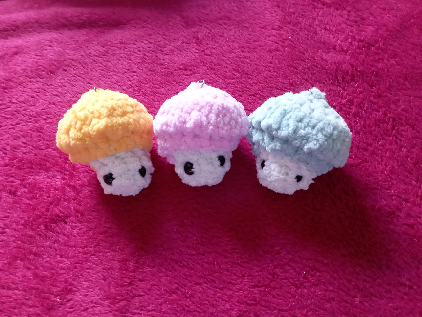 This is an adorable mushroom keychain that can be made in any colour.