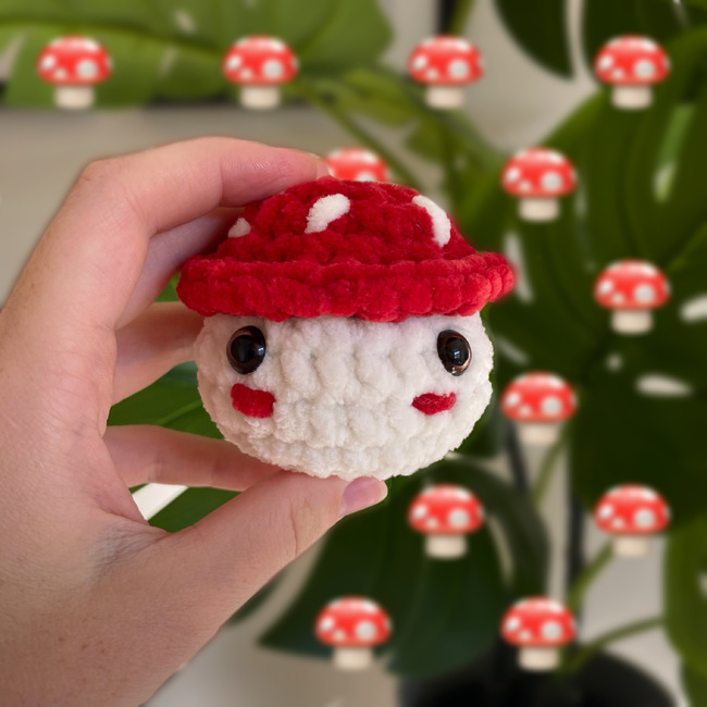 // If you crochet a cute mushroom, post and tag me on instagram: @crafterfrog