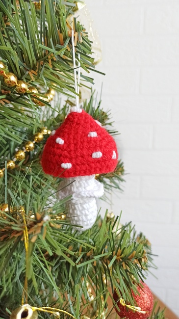 This mushrooms crochet pattern is a nice Christmas tree crochet ornaments. The pattern includes one PDF file with detailed instructions, pictures and links for video tutorials. You can make three types of mushrooms with only one pattern! It's a great project for crochet beginners. These mushrooms are a great addition for your crocheted toys. Also you can use it like props for photos or cute little keychains. And of course it can be one of vegetable for a kitchen play set.