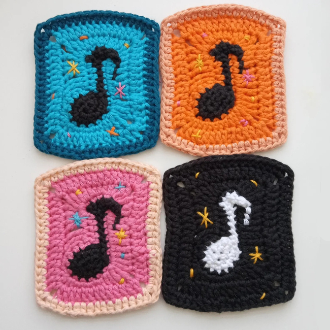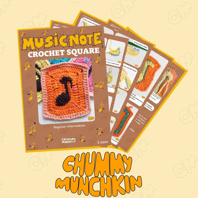 chummymunchkin designed the Music Note Crochet Square PDF Crochet Pattern - 2 sizes Beginner Friendly! pattern. Find more of their patterns on their Ribblr shop page.