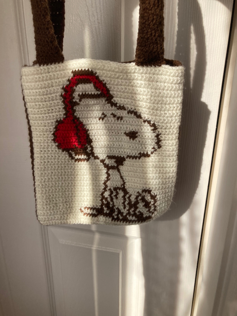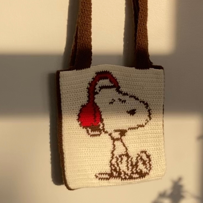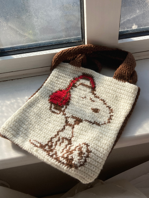 ArtisticKate designed the Music Snoopy Bag pattern. Find more of their patterns on their Ribblr shop page.