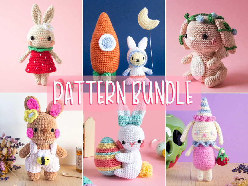 My Bunny Friends bundle includes the patterns for Berry the Bunny, Astro the Space Bunny, Blue Bell the Magical Bunny, Honey Bunny, Easter Bunny, and Cotton Bunny.