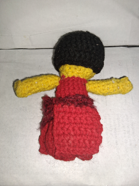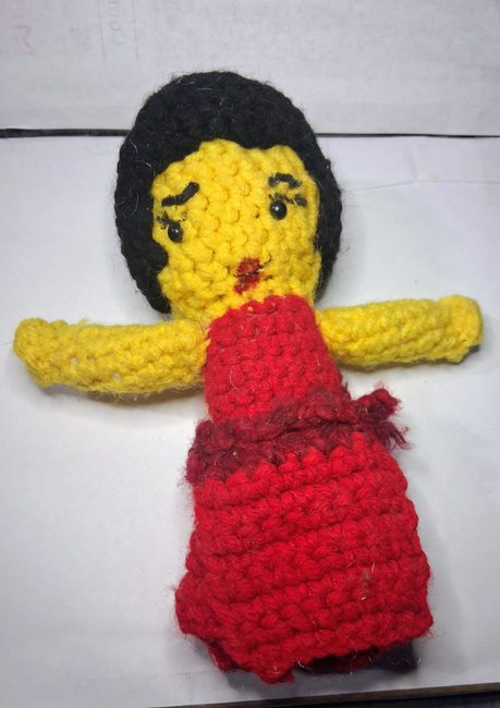 To make Myra you will need: Red heart red, Red heart cherry red, Red heart black, Red heart yellow, 8mm safety eyes. Tools required: 3.75mm.