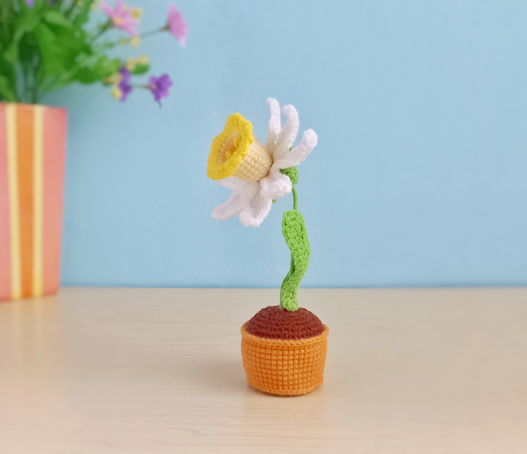 Make your own narcissus Flower in a Pot with TulipYarn pattern, The pattern is well-explained, easy to follow, and will definitely give you an adorable result!