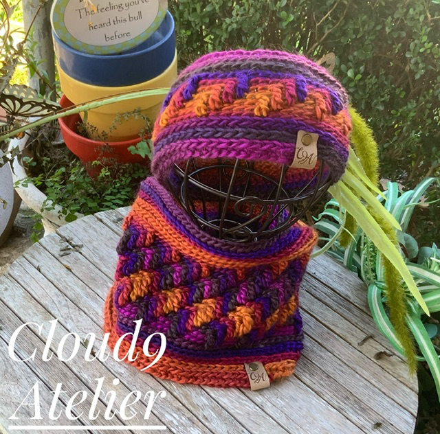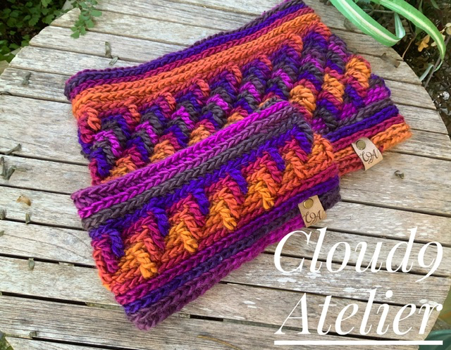 If you like interesting texture, this cowl and headband pattern bundle is for you. Both are worked in the round which means there is no sewing and only 2 ends to weave in. Self-striping yarn is heaven sent as it adds a layer of colorful interest. The design is a variation of the Apache Tears stitch.