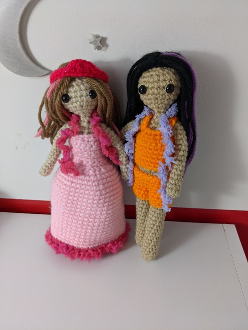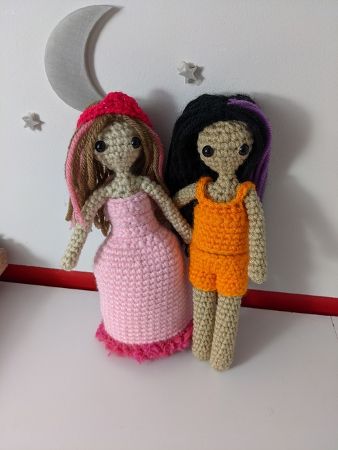 This is a paid pattern to make a small doll, with two outfits. Keep in mind that if you need to change the hook sizes, keep a 1mm difference in between. Hope you enjoy making her!