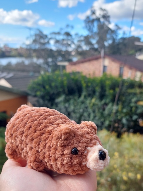 This is a beginner friendly no sew mini chonky bear! Make your own adorable little buddy in just an hour, no sewing required.