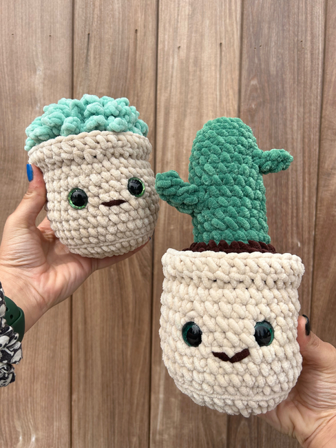 This pattern bundle makes TWO super cute no sew cactus!! This pattern involves a NO sewing! Basic crochet knowledge (sc, dc, inc, sl st) is needed to complete this pattern