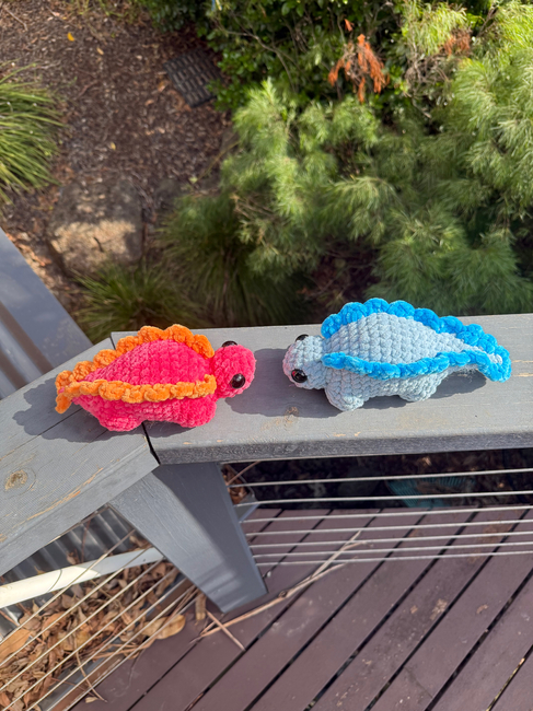 Mckellarcrochet designed the No sew crochet stegosaurus pattern. Find more of their patterns on their Ribblr shop page.