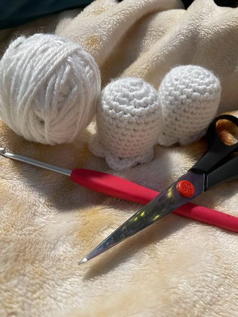 Nyx Novturnal designed the No Sew Ghost Friend pattern. Find more of their patterns on their Ribblr shop page.