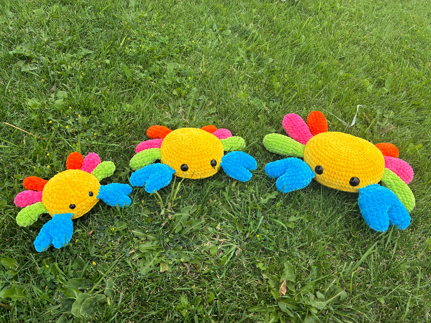 The other day my toddler saw an old-fashioned rainbow crab beanie baby at our grocery store. We didn't end up getting it, but apparently, she NEEDED it. So, I decided to try to recreate it. In the time it took me to do so, she forgot all about the crab. XD
