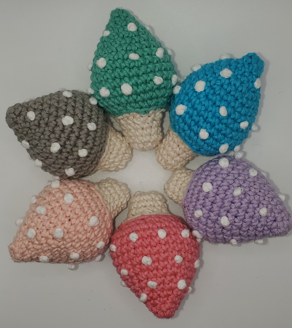 This crochet pattern is for making a charming pointed mushroom that can be used as a decoration, toy, or even a pincushion. The mushroom measures approximately 5 inches in height and is worked in the round using worsted weight yarn and a crochet hook in the appropriate size. The pattern includes detailed instructions on how to create the mushroom's cap, stem, and spots.