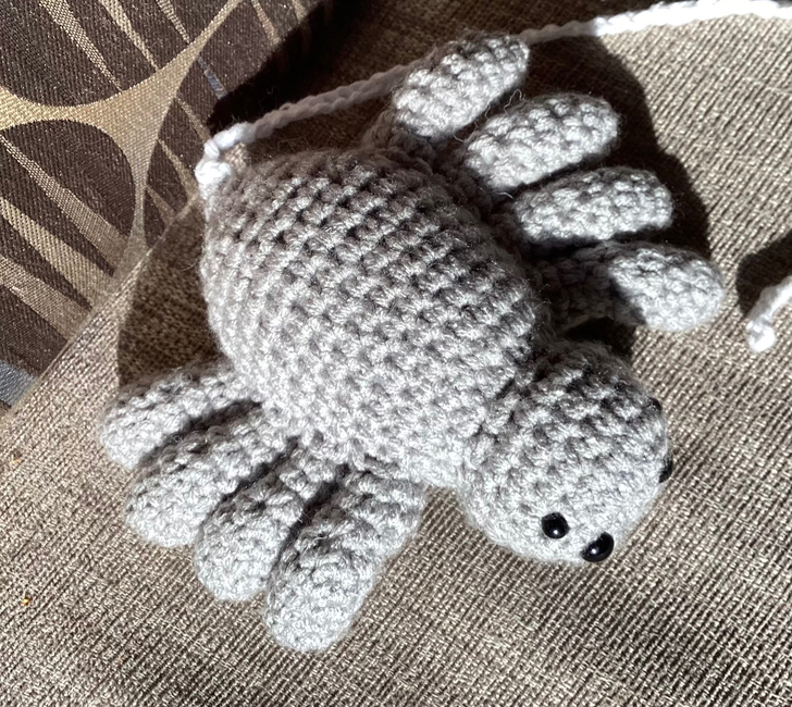 This spider is a custom pattern for @Lilcrochet14. It requires no sewing and making the web that the spider hangs from is optional