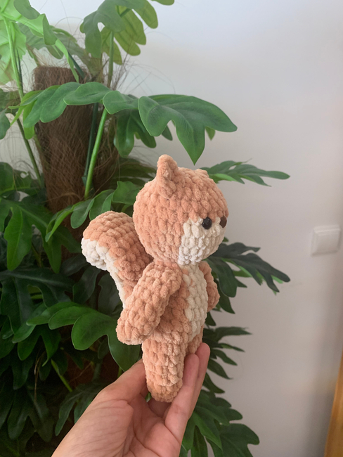 This is a crochet pattern to create a cute squirrel.