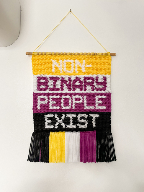 The Non-Binary Wall Hanging would make the perfect addition to your home decor. This will also make a great addition to your shop inventory for markets. This pattern is for intermediate crocheters who are comfortable working with more than one colour.