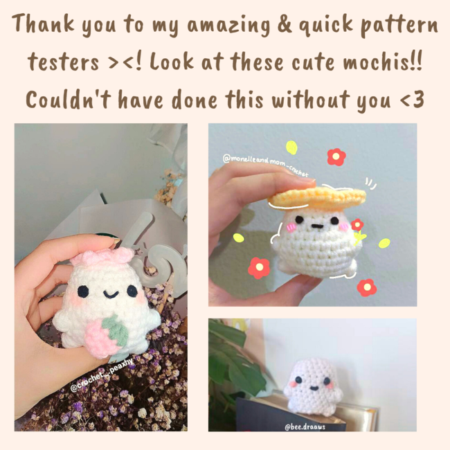 This pattern is a base design for the mochi's body. I tried my best to make the description simple, easy, and understandable so you can personalize your mochi! & make sure to have fun!!