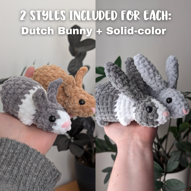This pattern includes instructions for both the solid-color bunny and the Dutch bunny (2 colors).