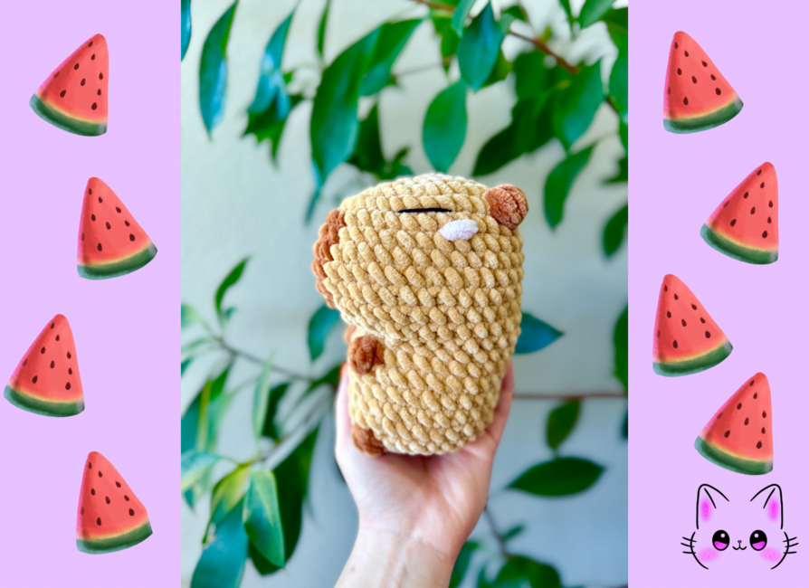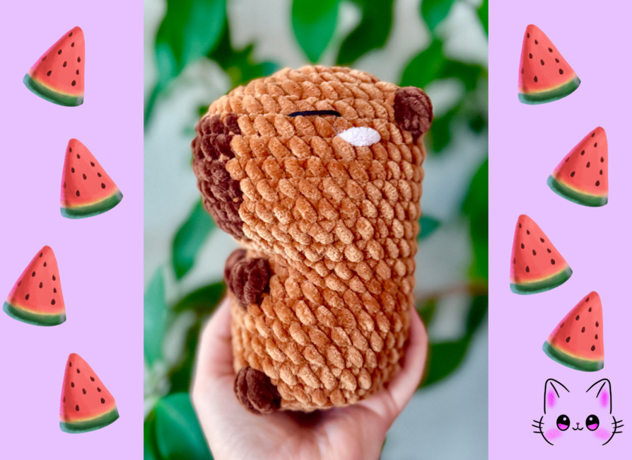 This no-sew pattern means no stitching, no stress just soft yarn, happy vibes, and maybe a cozy cup of tea (or a slice of watermelon ).