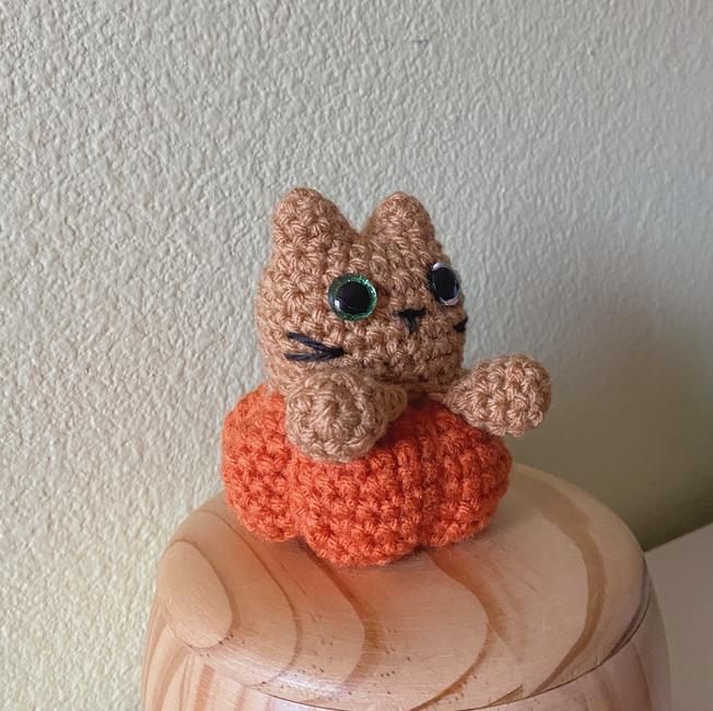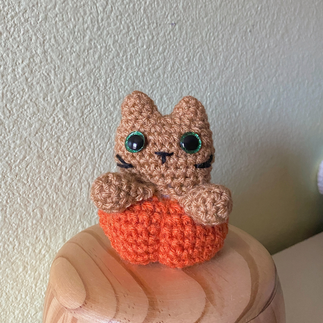 This pattern can be customized with any color to create an adorable kitty sitting in a pumpkin. And it's no-sew!