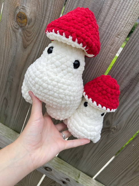 This pattern pack is for BOTH chunky mushroom patterns in my shop! They are both no sew, making them perfect for markets! You will be receiving a pattern for both the big and the mini version!