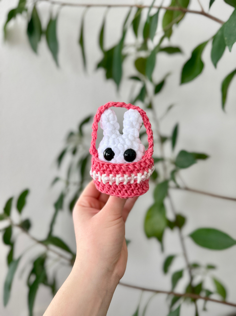 Meet Floppy, the little crocheted bunny who has decided that hopping is completely overrated. Instead, he prefers to sit comfortably in his basket and watch you go about your day. Very efficient. Very fluffy. Very relaxed.