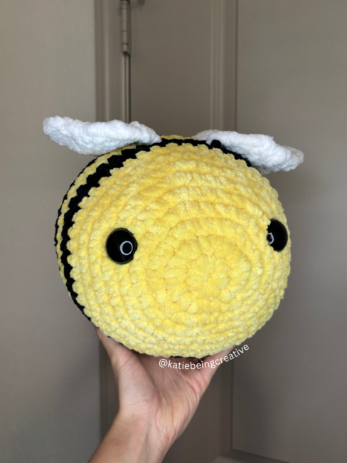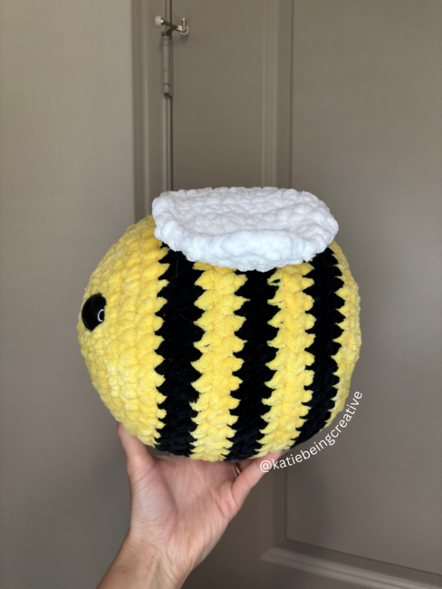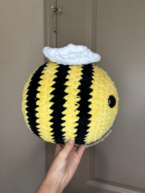 Katiebeingcreative designed the No-Sew Jumbo Bee Crochet Pattern pattern. Find more of their patterns on their Ribblr shop page.