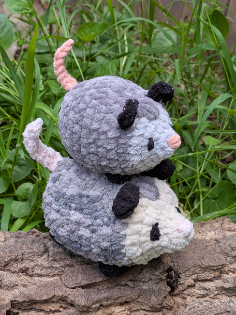 Cheerful Coyote designed the No-Sew Loaf Opossum pattern. Find more of their patterns on their Ribblr shop page.