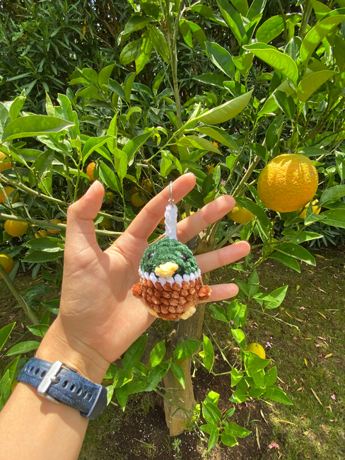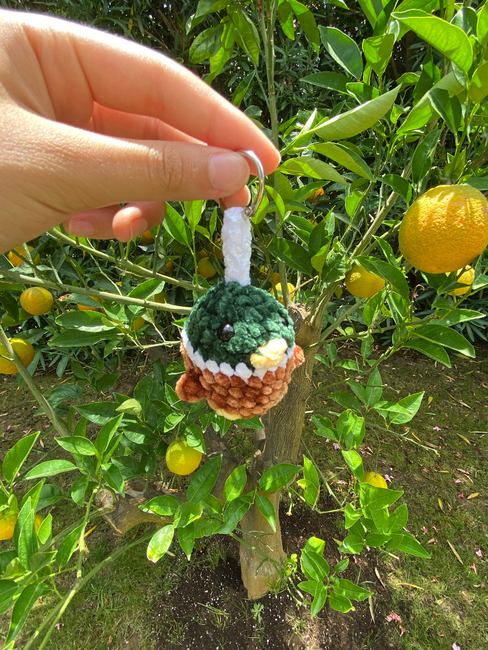 This pattern also includes an explanation on how to attach a keyring to the mini duck by using yarn.
