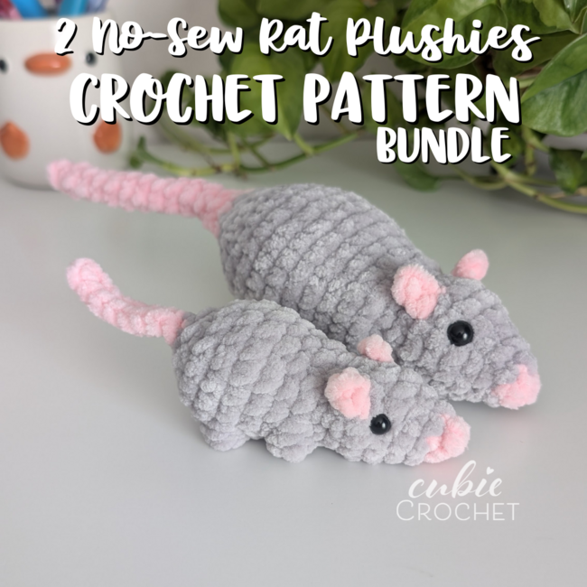 Get this bundle if you want to make two different sizes of no-sew rat plushies! This includes my original (larger) no-sew rat pattern, as well as my new baby rat pattern. They are both super quick to make and would make an excellent addition to your market booth.