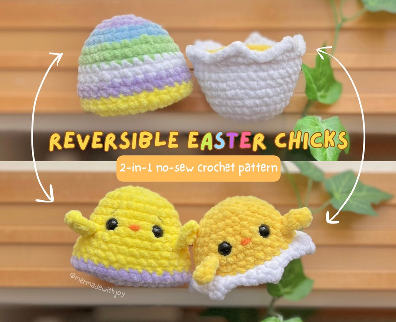 Mer-made With Joy designed the No-Sew Reversible Easter Chick Crochet Pattern pattern. Find more of their patterns on their Ribblr shop page.