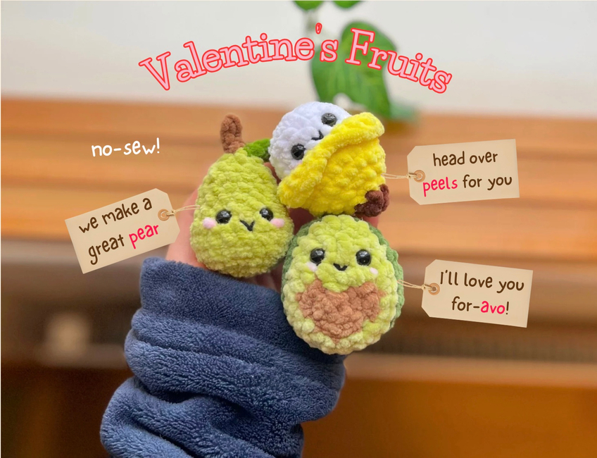 This is a 3-in-1 no-sew crochet pattern bundle for making a cute little avocado, banana, and pear! Perfect for a fun Valentine's day gift or any other occasion, this pattern works up in less than 30 minutes!